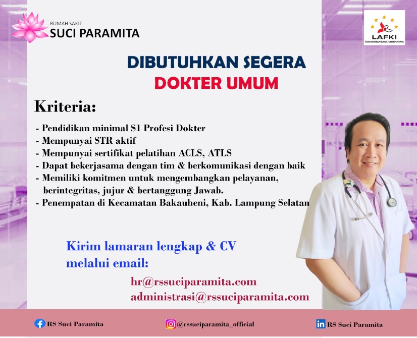Kirim lamaran lengkap & CV ke : hr@rssuciparamita.com