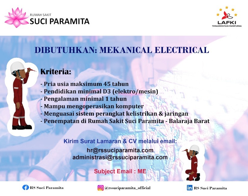 Kirim lamaran lengkap ke : hr@rssuciparamita.com